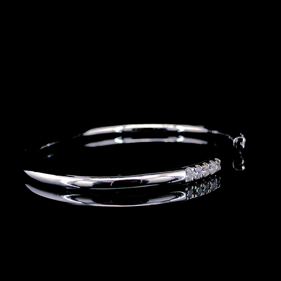 Crafted in 925 sterling silver, this bracelet features 10 round cut moissanite stones! 5 on each side, separated by a sleek open gap. The design symbolizes unity and connection, with brilliance that meets in the sleak silver
