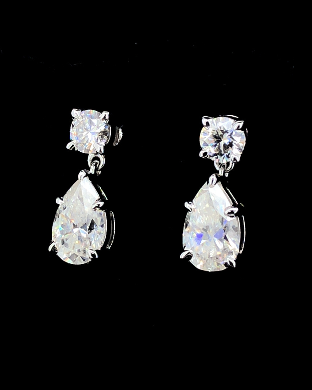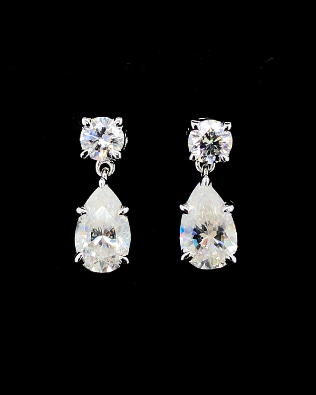 Introducing the PEAR DROP EARRING From IZEL – a graceful blend of modern elegance and timeless charm. Crafted in 925 sterling silver weighing 2.6 grams, this exquisite design features a striking combination of one round and one pear-shaped diamond in each earring, perfectly balanced to create a captivating silhouette. In total, four dazzling diamonds, weighing 2.02 carats, come together to reflect unmatched brilliance and refinement. The pear-shaped drop delicately elongates the profile, making it a versatile piece that complements both everyday sophistication and evening glamour. Designed for those who appreciate subtle luxury, the Pear Drop Earring adds a refined sparkle to every look, a true embodiment of IZEL’s belief in minimalist and handcrafted staple designs.