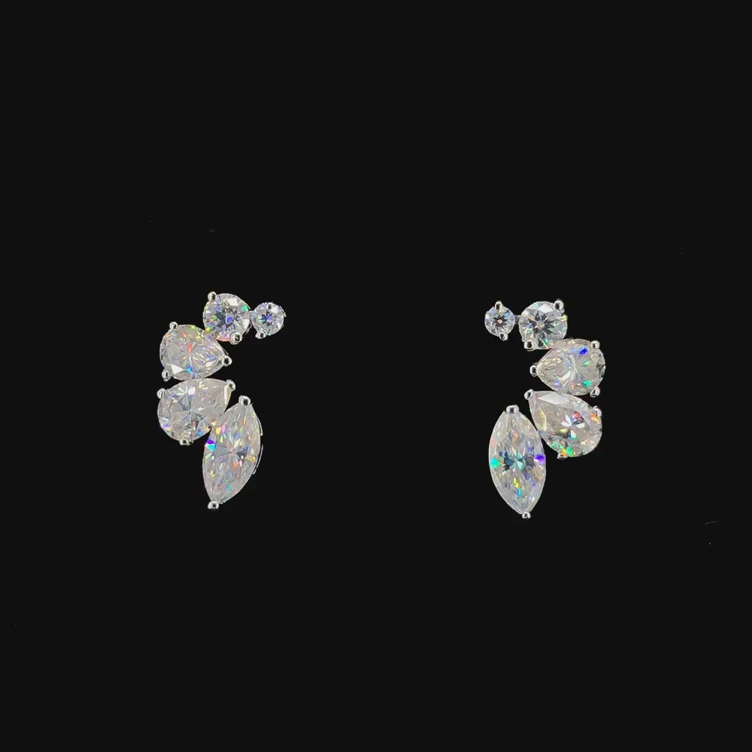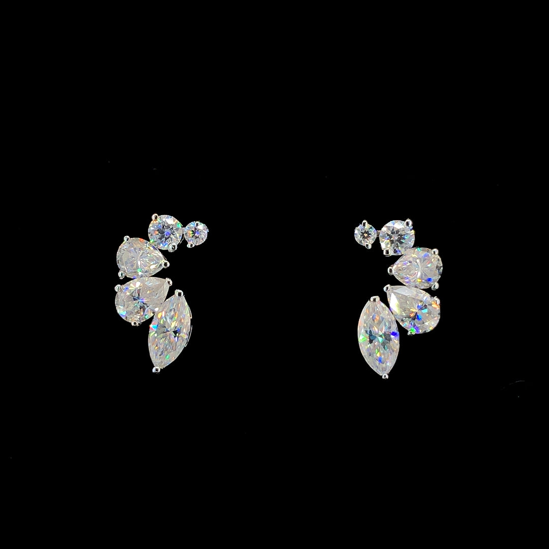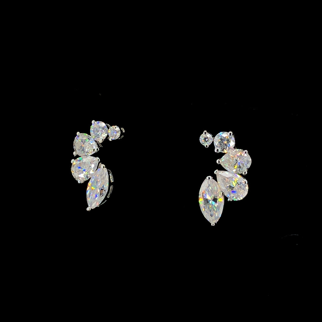 The ARC EARRING by Izel Jewells: A radiant harmony of curves, symmetry, and sparkle. Crafted in 2.02 grams of fine 925 sterling silver, this elegant piece showcases a dynamic arrangement of 10 shimmering diamonds in a captivating arc. Featuring a graceful blend of round, pear, and marquise-shaped stones, the design plays with form and light to create a fluid sense of motion and modern elegance. With a total diamond weight of 2.10 carats, this design is a bold yet refined statement, perfect for adding dimension and brilliance to any look. Whether worn as a solo stunner or paired with other Izel pieces, this design speaks to our signature style of minimalist luxury with meaningful detail.