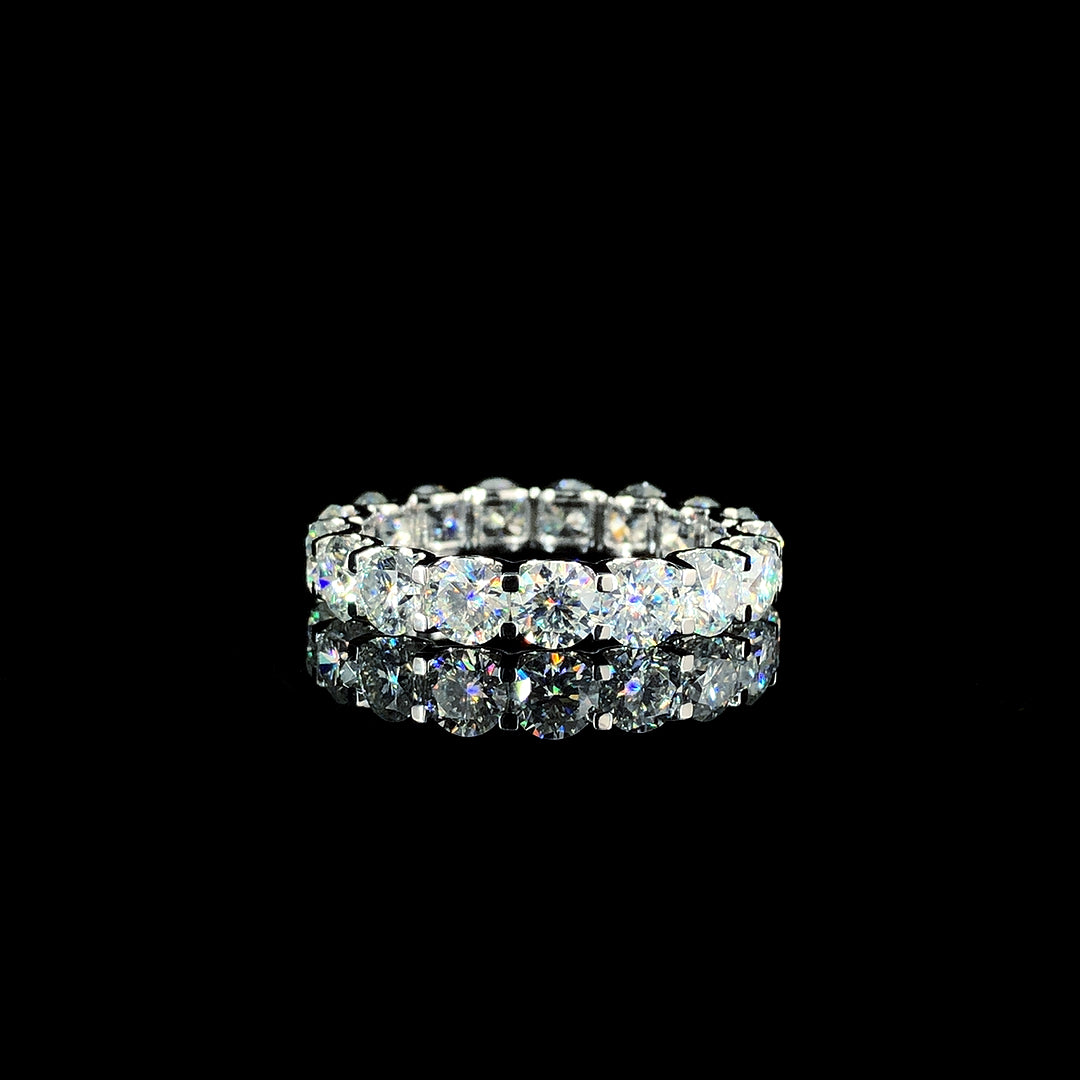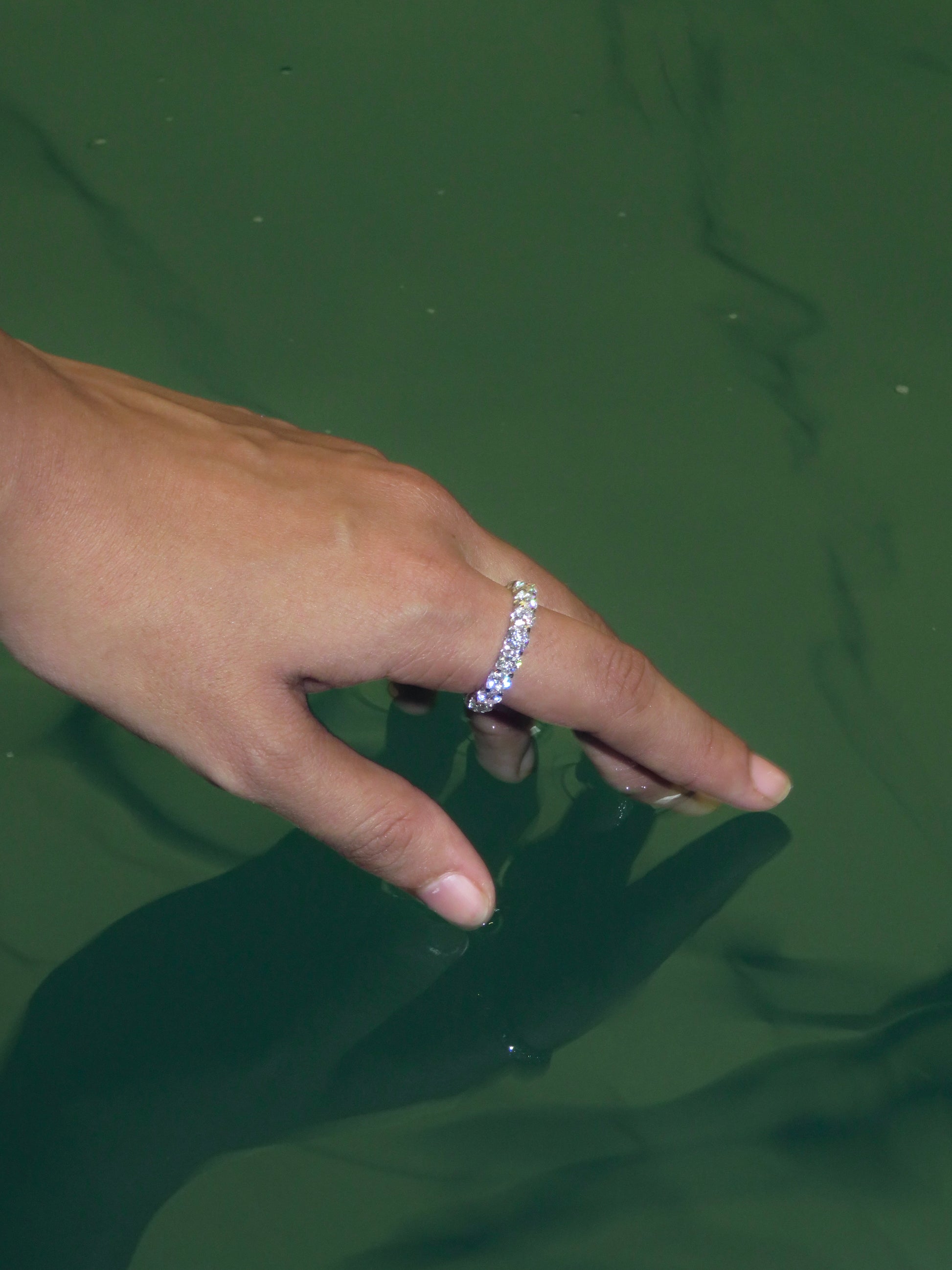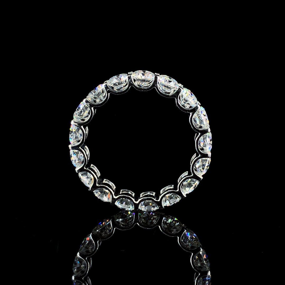 A symbol of eternal elegance and boundless brilliance. Expertly crafted in 4.02 grams of 925 sterling silver, this striking design features 17 round-cut diamonds that gracefully flow along the band in a seamless, continuous loop. With a total diamond weight of 4.71 carats, each stone is precisely set to maximize its radiance, creating a dazzling reflection of light from every angle. The fluid form of the ring captures the essence of infinity, making it not only a statement of style but also a meaningful expression of everlasting love and connection. The Infinity Ring is a perfect blend of classic design and modern craftsmanship, true to the spirit of IZEL Jewells