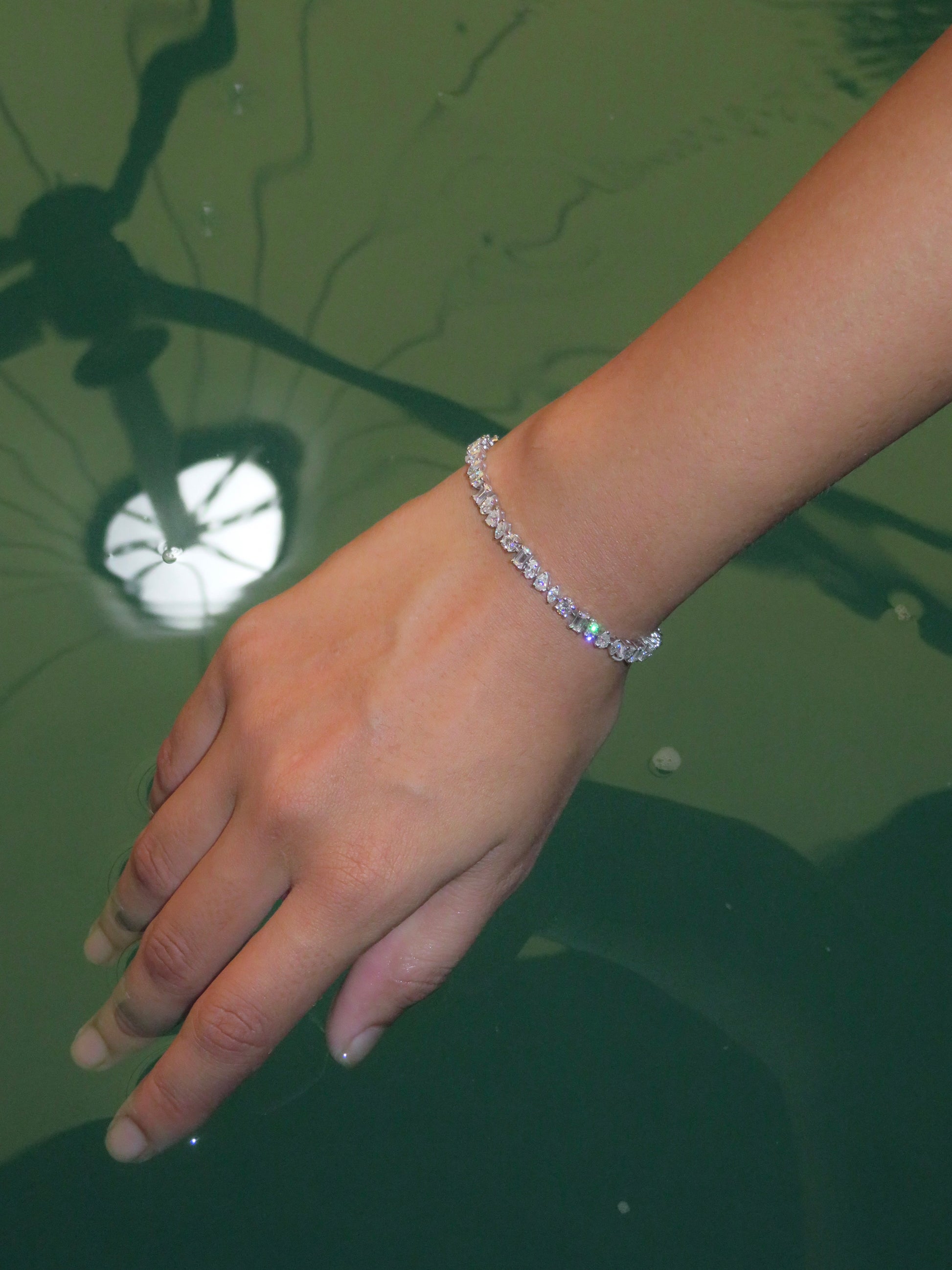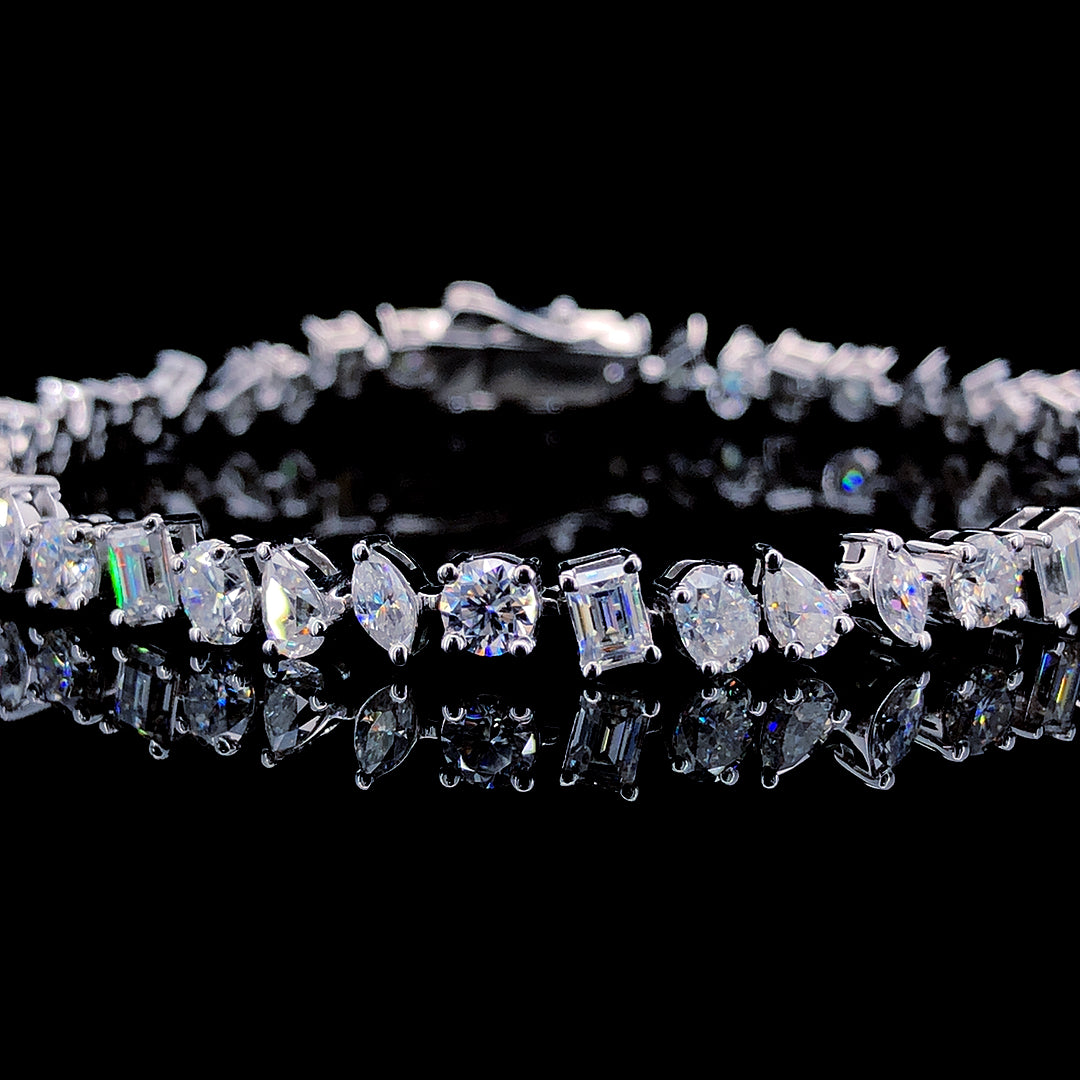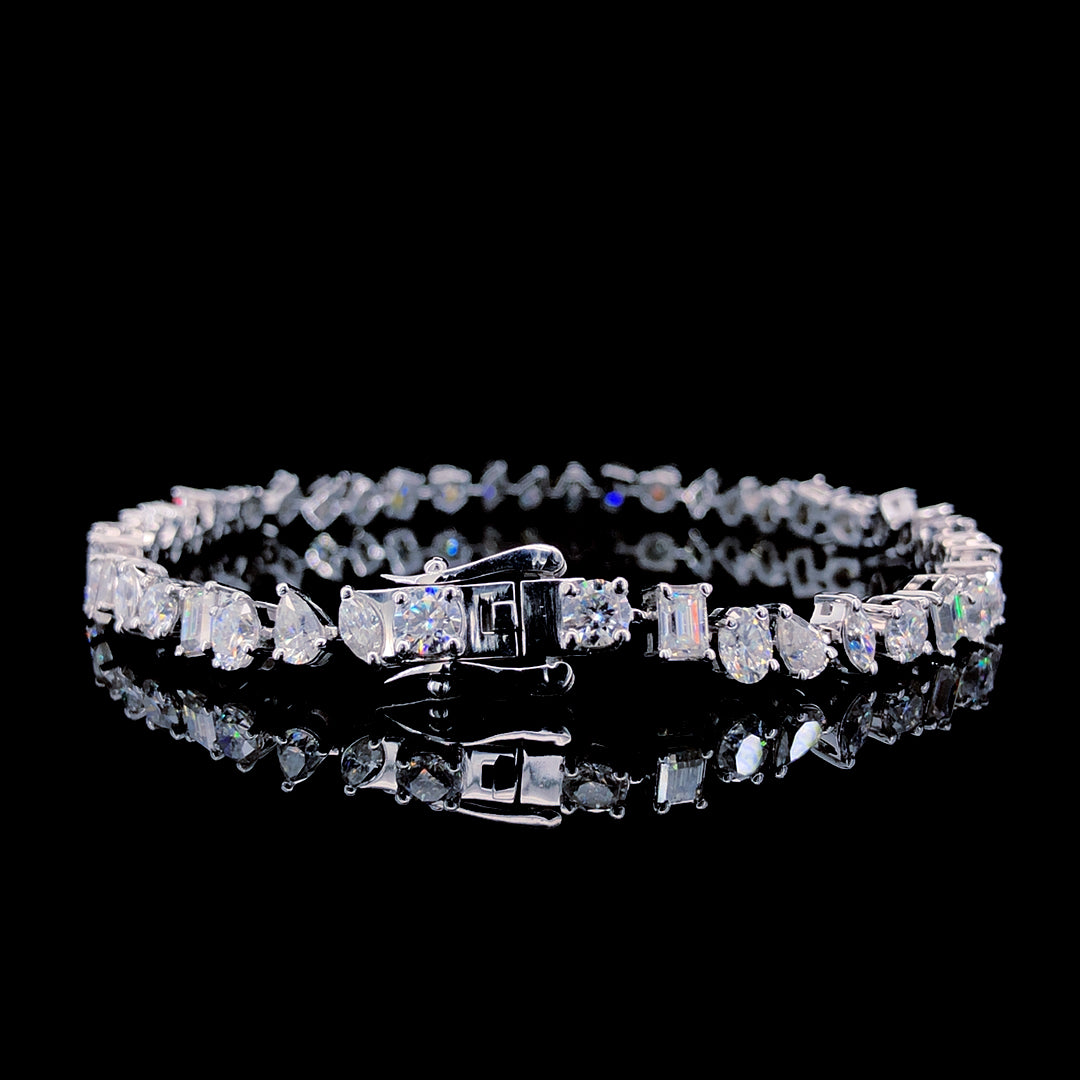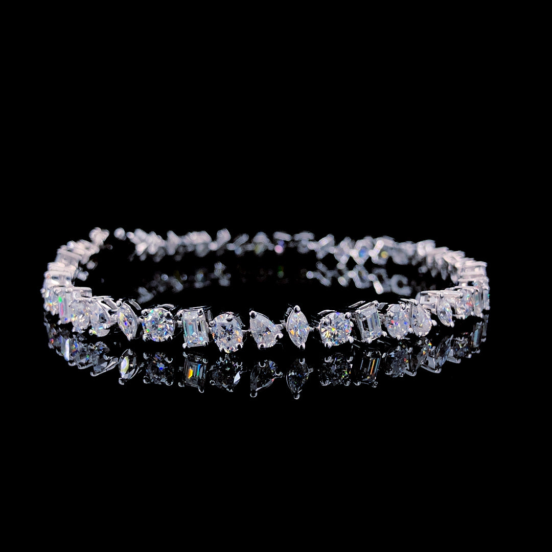 A playful blend of shape sparkle and celebration Crafted in 10.45 grams of 925 sterling silver this lively design features 46 diamonds in a curated mix of marquise pear oval emerald and round cuts. With a total diamond weight of 5.07 carats the arrangement brings a dynamic flow of brilliance to the wrist The MOCKTAIL BRACELET is designed to reflect movement and energy making it a standout piece for any occasion that calls for bold style and elevated charm.